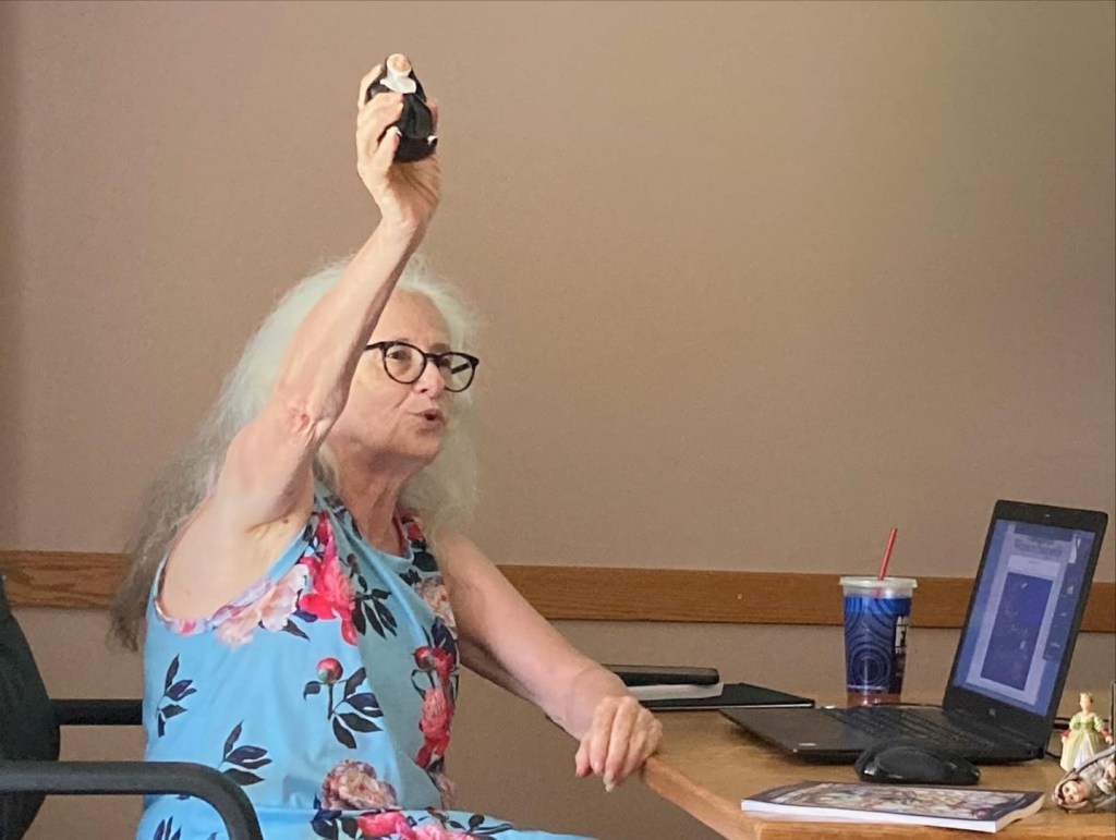 Rachel Thompson, who occasionally writes essays for Parisian Phoenix, attended the meeting via Zoom. She announced her latest self-published novel, Book of Answers, and Gayle just-so-happened to have a copy with her. Here is my critique of the book design.
