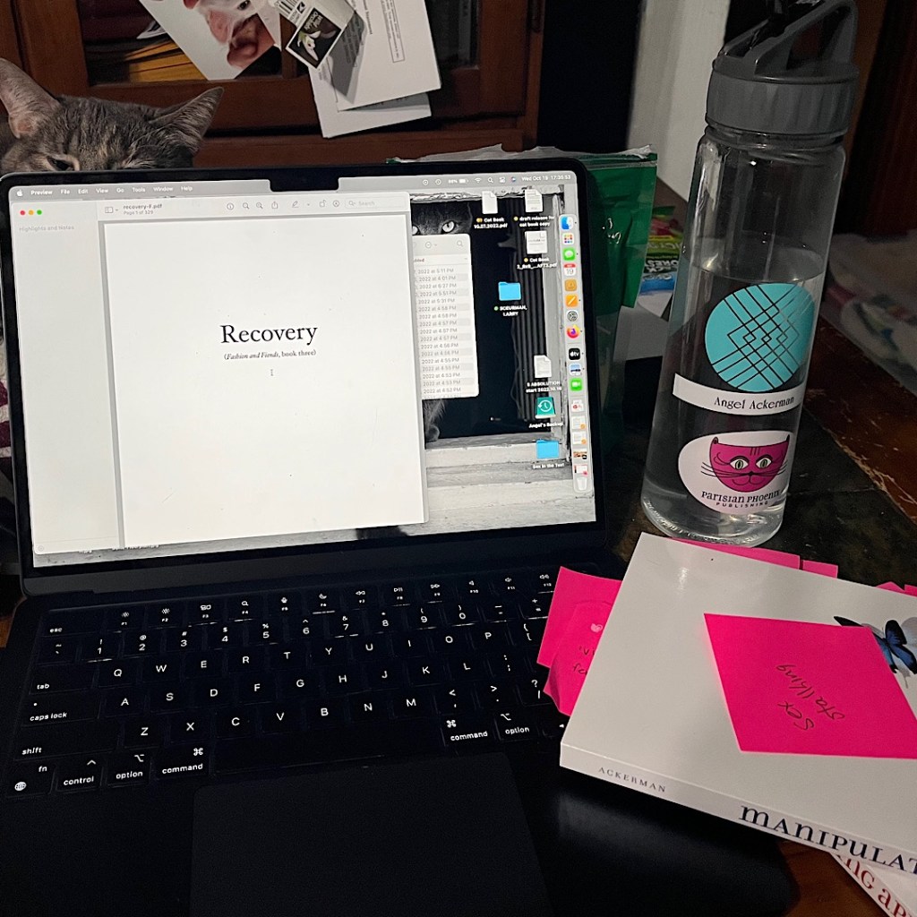 Last night Angel went through the first two volumes of the Fashion and Fiends series, Manipulations and Courting Apparitions, marking the sexy parts.