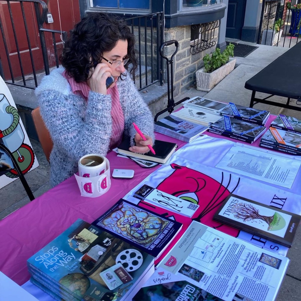 We attended the small press book expo at Easton Book Festival 2022 today, selling our own books, Nancy Scott’s chapbooks and William D. Prystauk’s Kink Noir series. It was a lovely autumn day with new friends from Pink Trees Press from New York City.