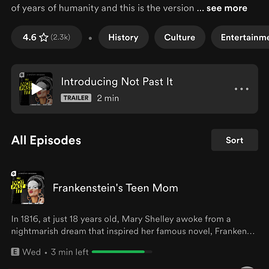 Yesterday was Halloween, so for the last month the themes of monsters, horror and spookiness has filled my podcast feed. One such podcast was last week’s episode of “Not Past It,” a historical podcast that looks at an event from “that week in history.” This particular episode focused on the origins of Frankenstein, or as their title put it, “Frankenstein’s Teen Mom.”