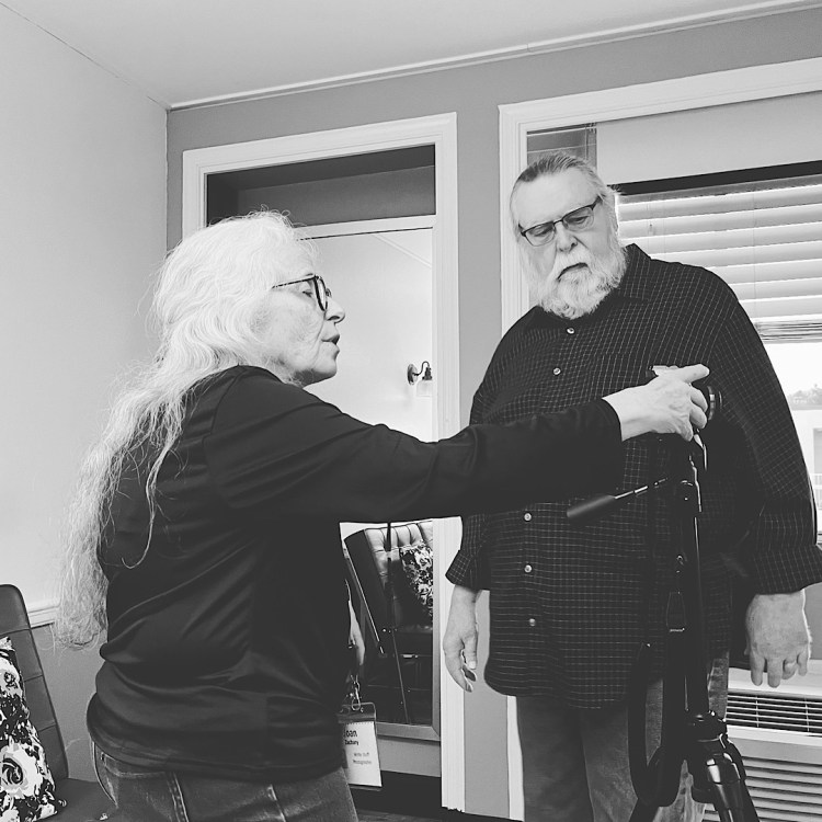 Yesterday, we scoped out the room, rearranged the furniture and I found every light switch. Then, today, I arrived with munchkins, muffins and caffeinated seltzers in hand. Because Joan might need a pickup and seltzer does not need to be warm or cold, muffins can be nibbled, and our subjects might need some sugar to help them relax. And munchkins bring out a softness in all of us.