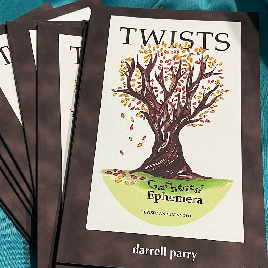 Speaking of the Arts Community of Easton, ACE member Maryann Riker has painted covers for both Darrell Parry’s Twists: Gathered Ephermera and Thurston Gill’s The Phulasso Devotional. Maryann shared a photo on social media of her own studio, which, because she typically paints miniature watercolors, is the top of her dryer.