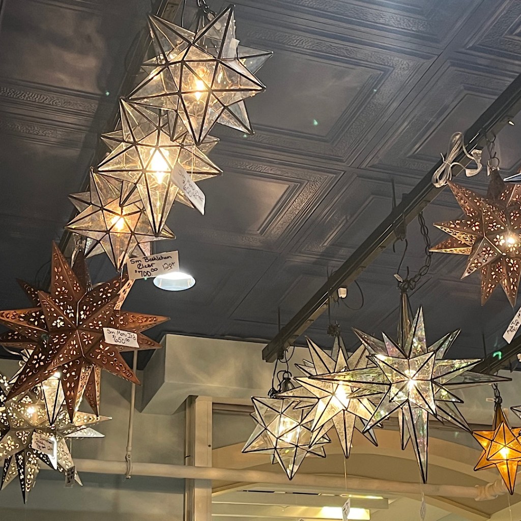 But in today’s downtown Bethlehem, almost 30 years later, there’s a very loud cover band a few rooms away, sharing its renditions of All the Small Things and American Girl. I admire the Moravian stars on display. Moravian stars have 26 points and apparently equal-length arms– I can’t seem to find consistent sources on whether the 14 point or 8 point star is the Bethlehem Star. I also can’t find info on WHY the Moravian Star has 26 points.