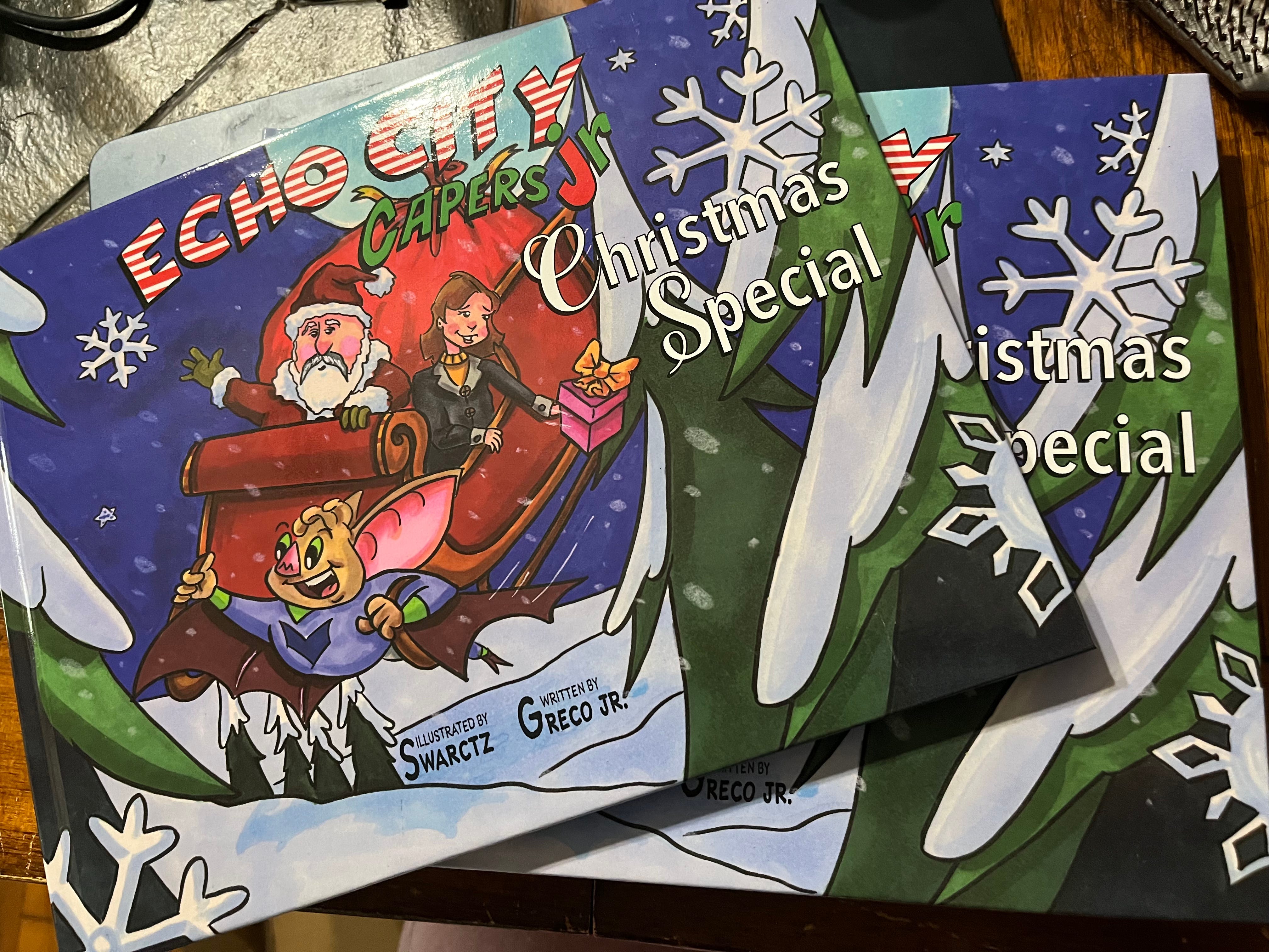 - SATURDAY, OCTOBER 21, 11:30 a.m. to 12, ECHO CITY CAPERS illustrator Joe Swarctz (who also did the cover illustration for Juicy Bits) and writer Ralph Greco will present their new children’s Christmas book at Easton Public Library.