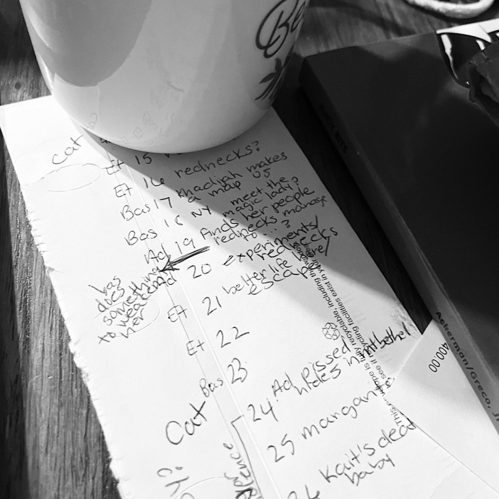 Yesterday, I made an outline. I scribbled it on the back of an envelope a client had sent. You know, with their payment. It doesn’t even make sense but it offers one way out of the murky middle.