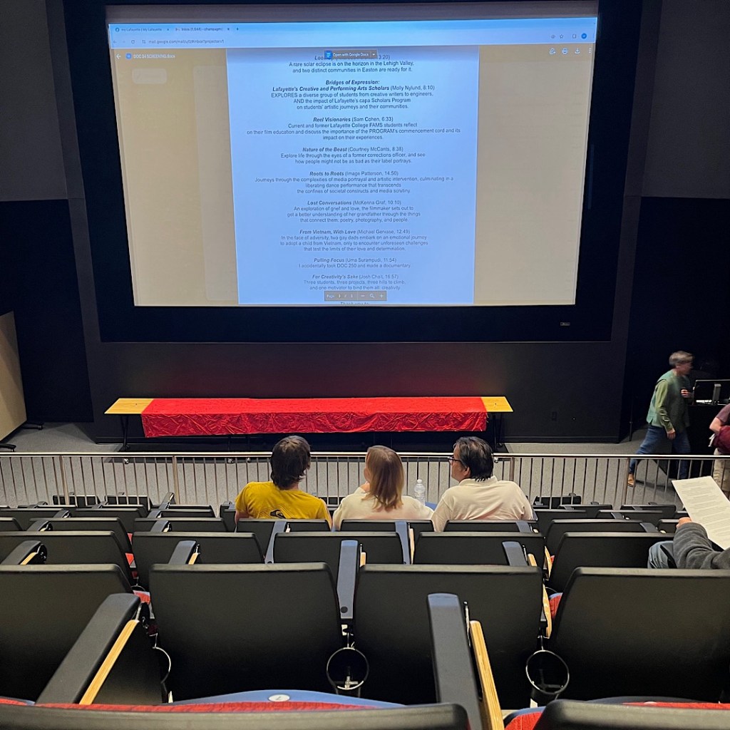 Last night Eva Parry and I attended the public screening of Lafayette College‘s DOC 250, a class on documentary filmmaking that is part of the college’s Film and Media Studies program.