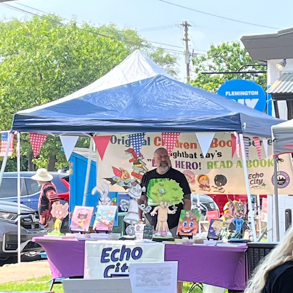 On Sunday, Joseph Swarctz and I went to Local Author’s Day at the Flemington Summer Book Festival sponsored by Act 2 Books. We each purchased a table to promote both Echo City Capers and Parisian Phoenix Publishing.