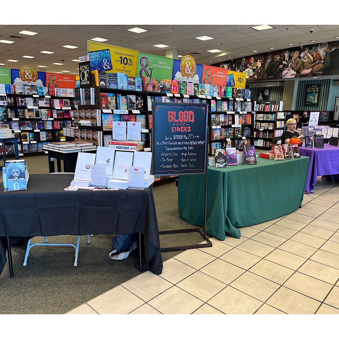On Saturday, I had the pleasure of participating in Blood in the Stacks at the Barnes & Noble in the Southmont Shopping Center, Bethlehem Township, Pa. Six horror authors from Pennsylvania and New Jersey were on hand to sign their horror books: