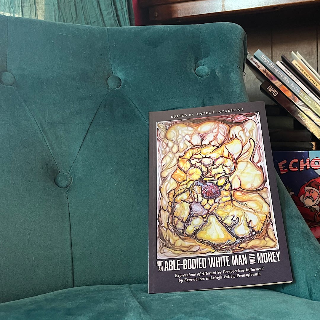 - 1 p.m. poetry reading featuring McKenna Graf, and her new book Mortals, Myths and Maybes; Darrell Parry, whose book Twists: Gathered Ephemera is in stock at the store and Nancy Scott, whose poetry was featured in The Phulasso Devotional by Thurston D. Gill Jr. (also available in the store) and whose prose was included in Not an Able-Bodied White Man with Money, our marginalized voices anthology.