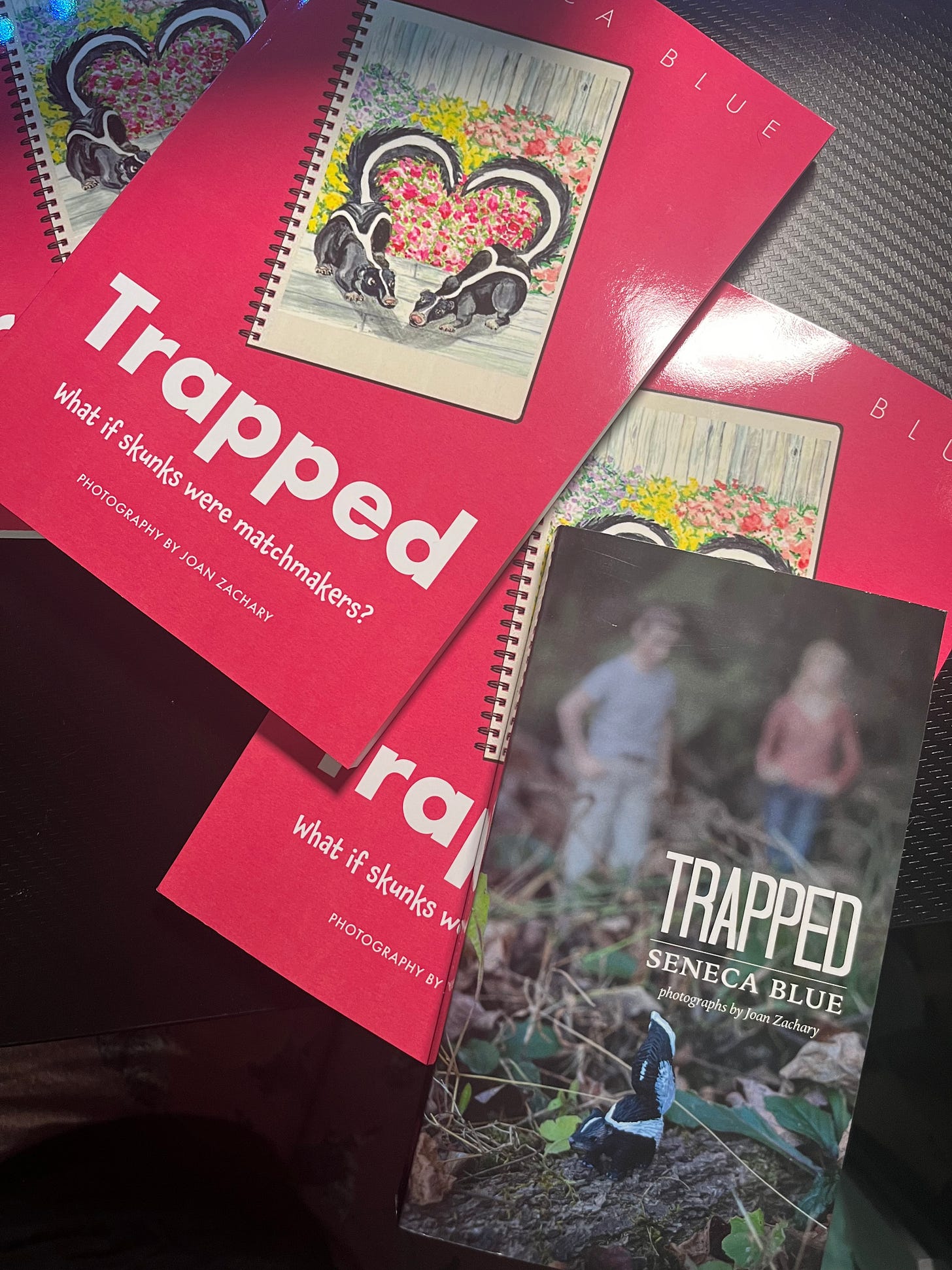 For our Book Lovers Celebration at Barnes & Noble this weekend, we decided to rerelease the book with even more photographs, in full-color, and we added a watercolor painting to the cover (by Rachel Thomspon) featuring the skunks that inspire our whole story.