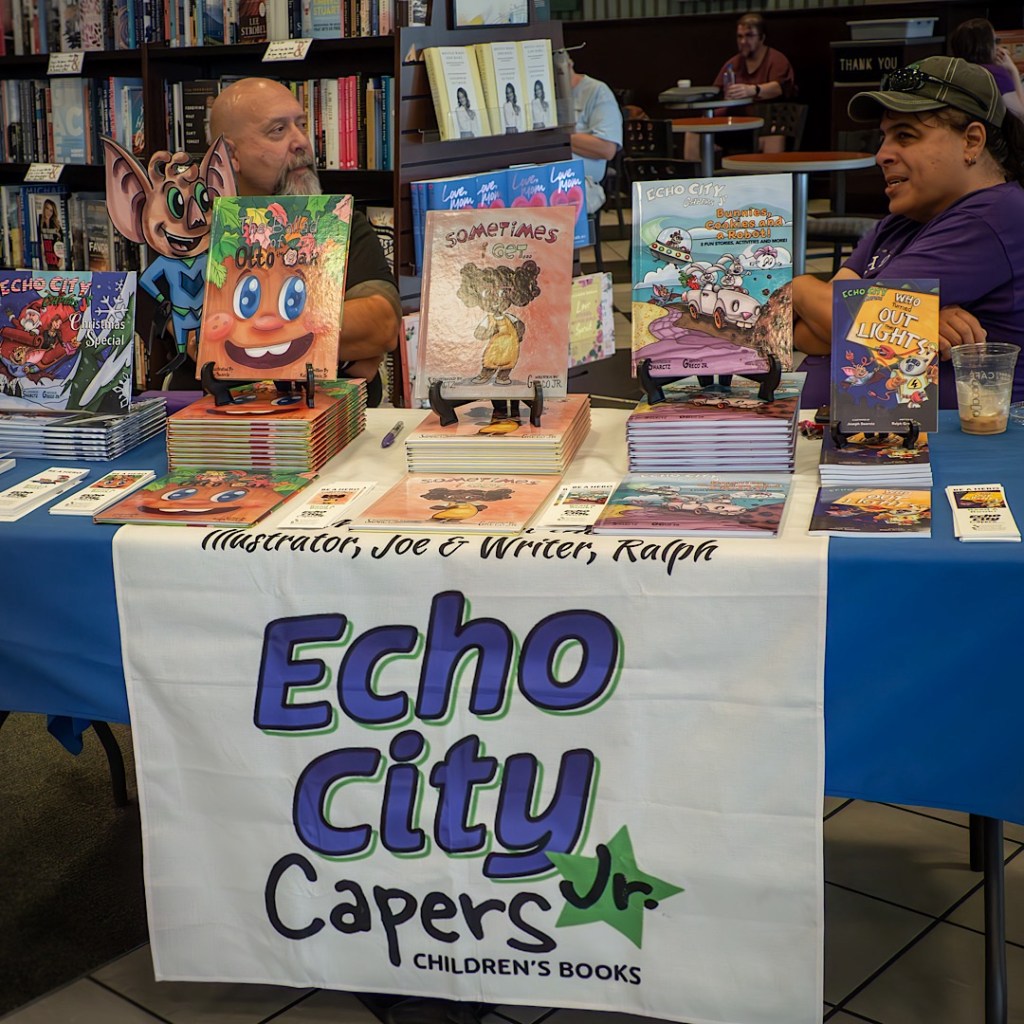 At 2 p.m., Ralph Greco read from two of the Echo City Capers books in stock at Barnes, The Ballad of Otto the Oak and an excerpt from the middle grade chapter book, Who Turned out the Lights?