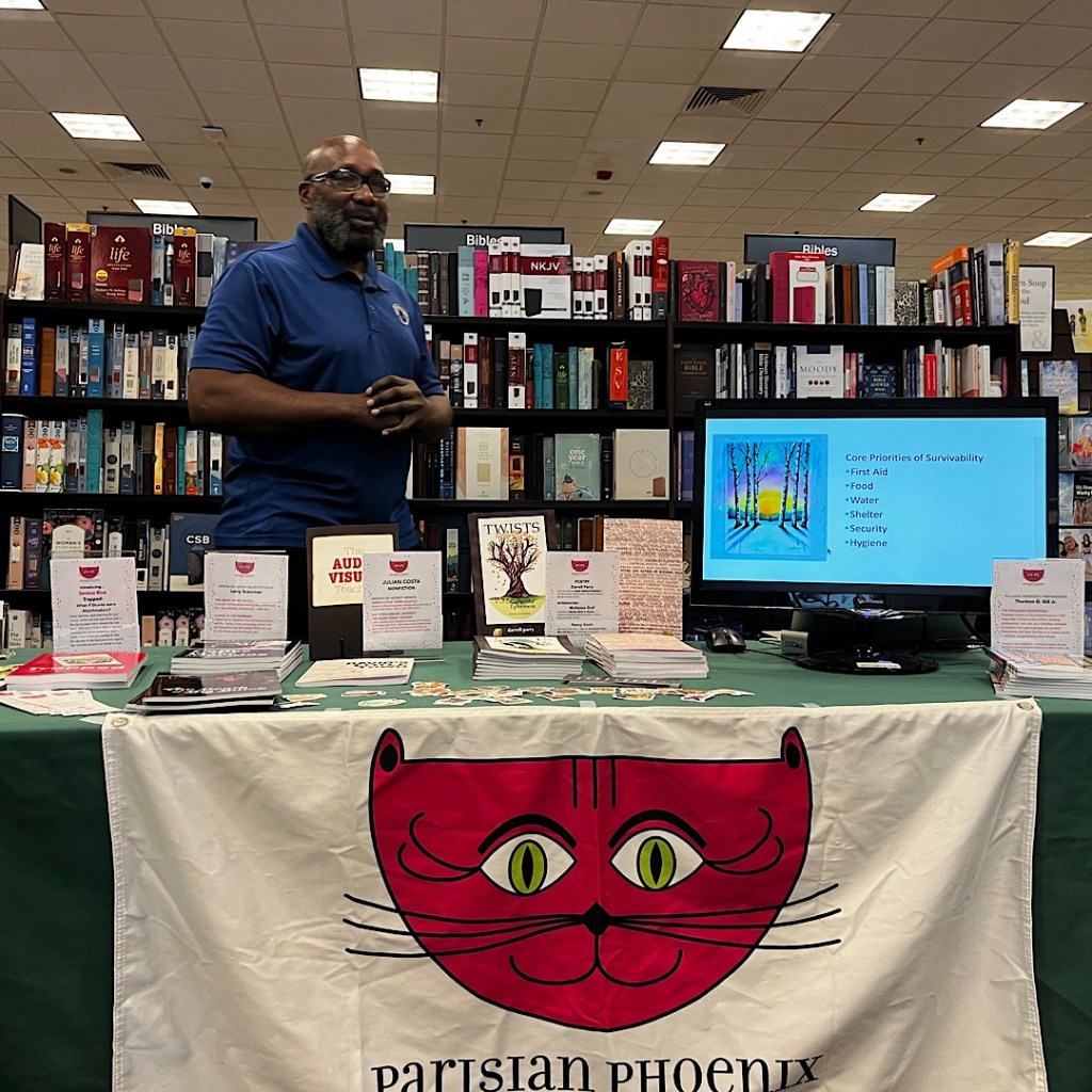 At 3 p.m., Thurston Gill hosted an emergency preparedness seminar. His book, The Phulasso Devotional, is also in stock at the Bethlehem Barnes.