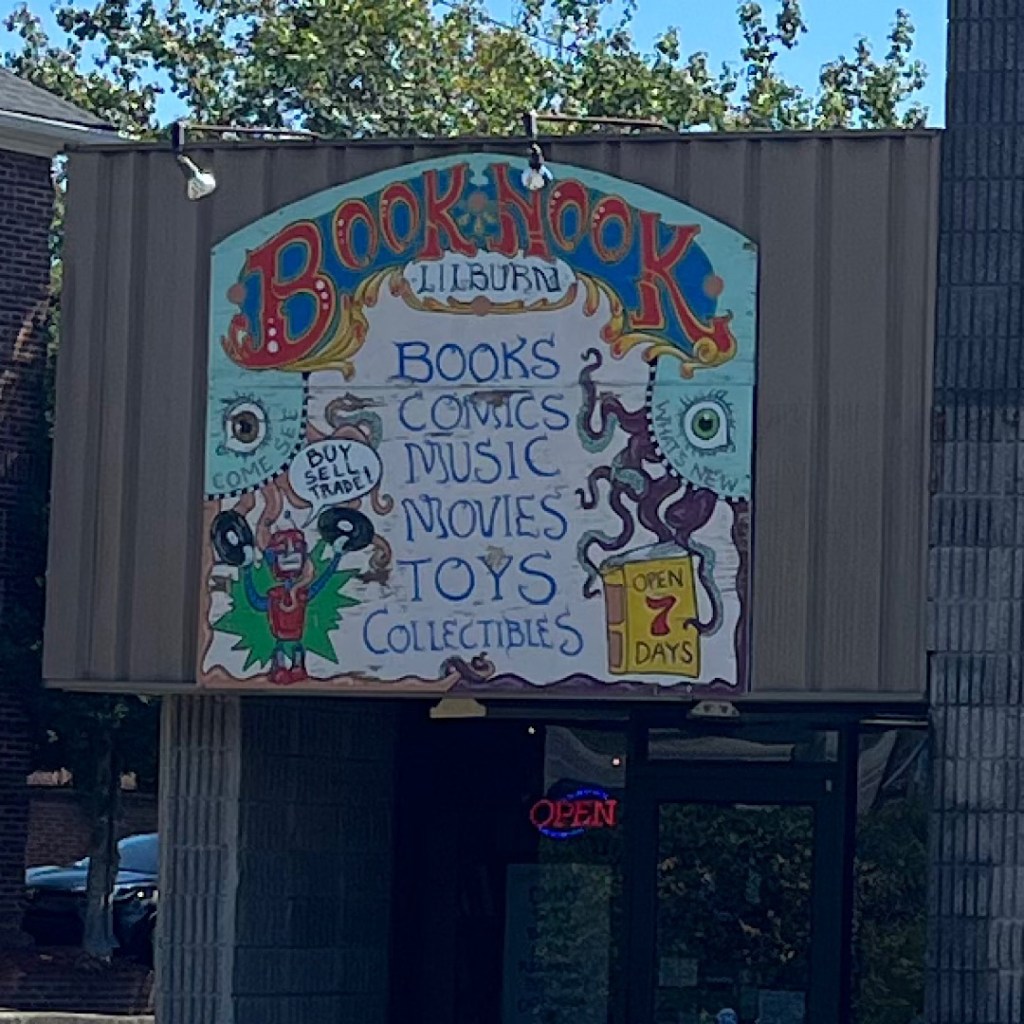 - The Book Nook: A strange used everything store in Lilburn, Ga. This was the only place I didn’t talk to anyone because the people and the customers were all really old. And it was the only place I walked into where nobody talked to me. They had everything from records to comics to books and DVDs. And a cat-themed ladies room.