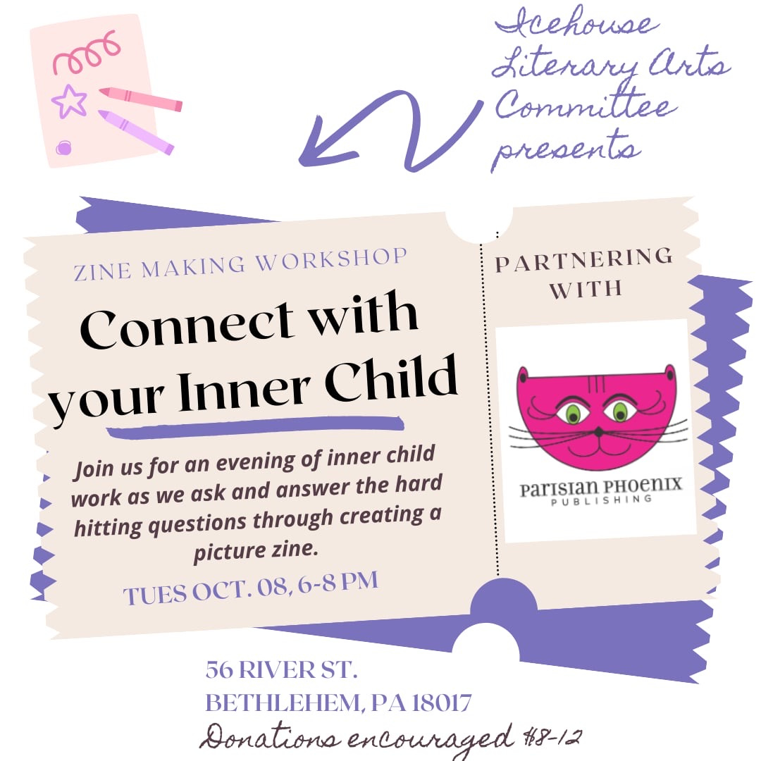 So if you want to try your hand at Zine-making, and give a voice to your inner child, join us tonight at Bethlehem’s Icehouse, 6 to 8 p.m. on Sand Island.