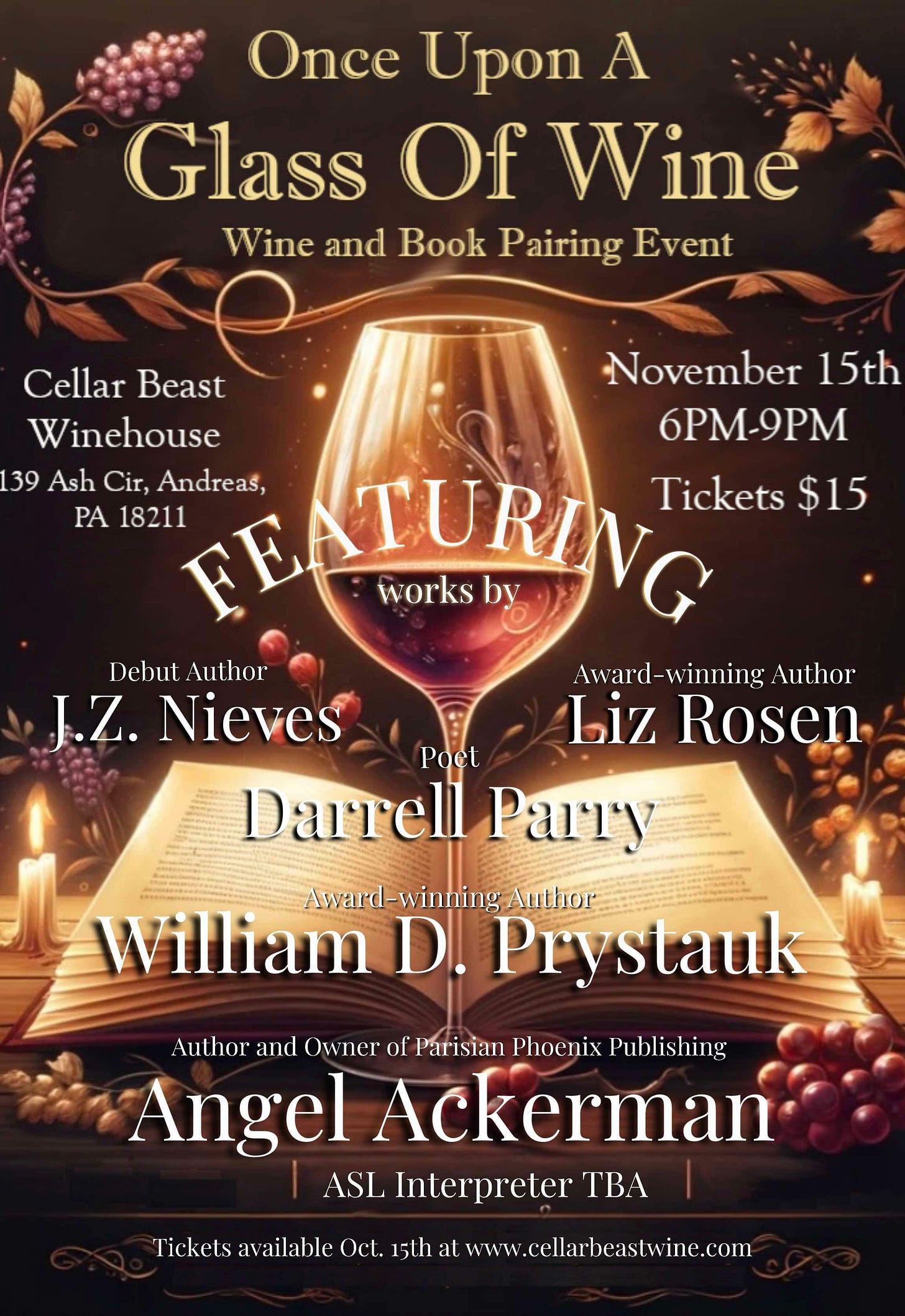 Bill Prystauk and I will be headed to Cellar Beast Winehouse in Andrees on November 15 for what might be the most unusual book event ever… We will be joining J.Z. Nieves and Liz Rosen reading our various horror-adjacent works. And the sommelier at Cellar Beast will be pairing wines with our stories!