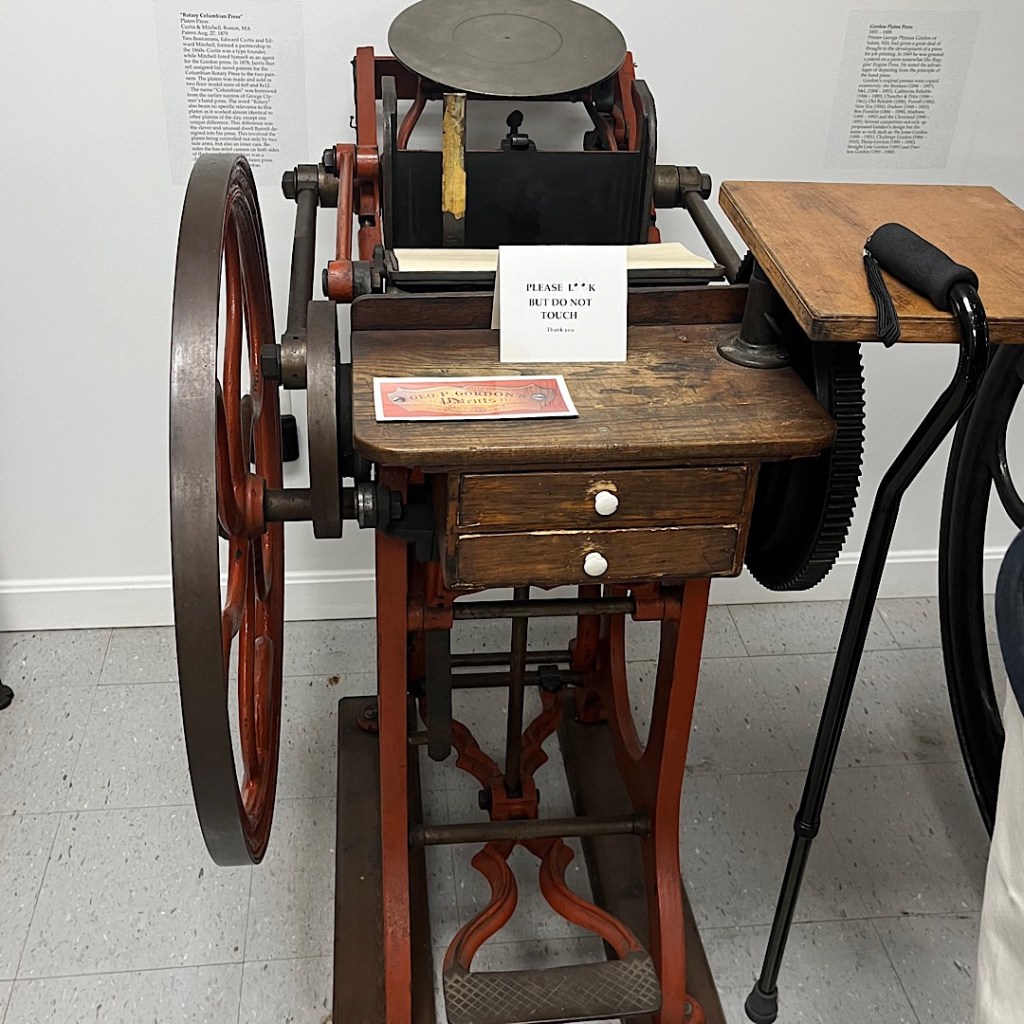 The volunteers at the museum–at least the ones we met– are all retired from the printing industry and very knowledgable. Gayle, with her background in commercial printing, has used most of the technology on display and with her academic specialty with type and print, knew most of the items in the building. I have experienced much of what they have in the collection, but many of the items I had a basic understanding of but had never seen in action because I was always on the writing end, not the production end.