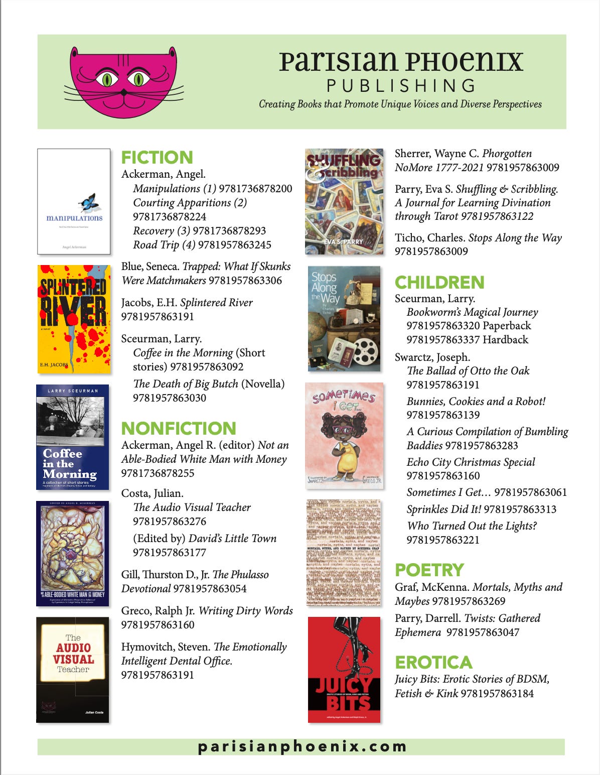 Remember I’ll mail you signed copies of any Parisian Phoenix title for retail price plus $10 and in most cases, I can have them signed and personalized by the author. My Venmo is @Angel-Ackerman-2. Reply to this newsletter for more details.