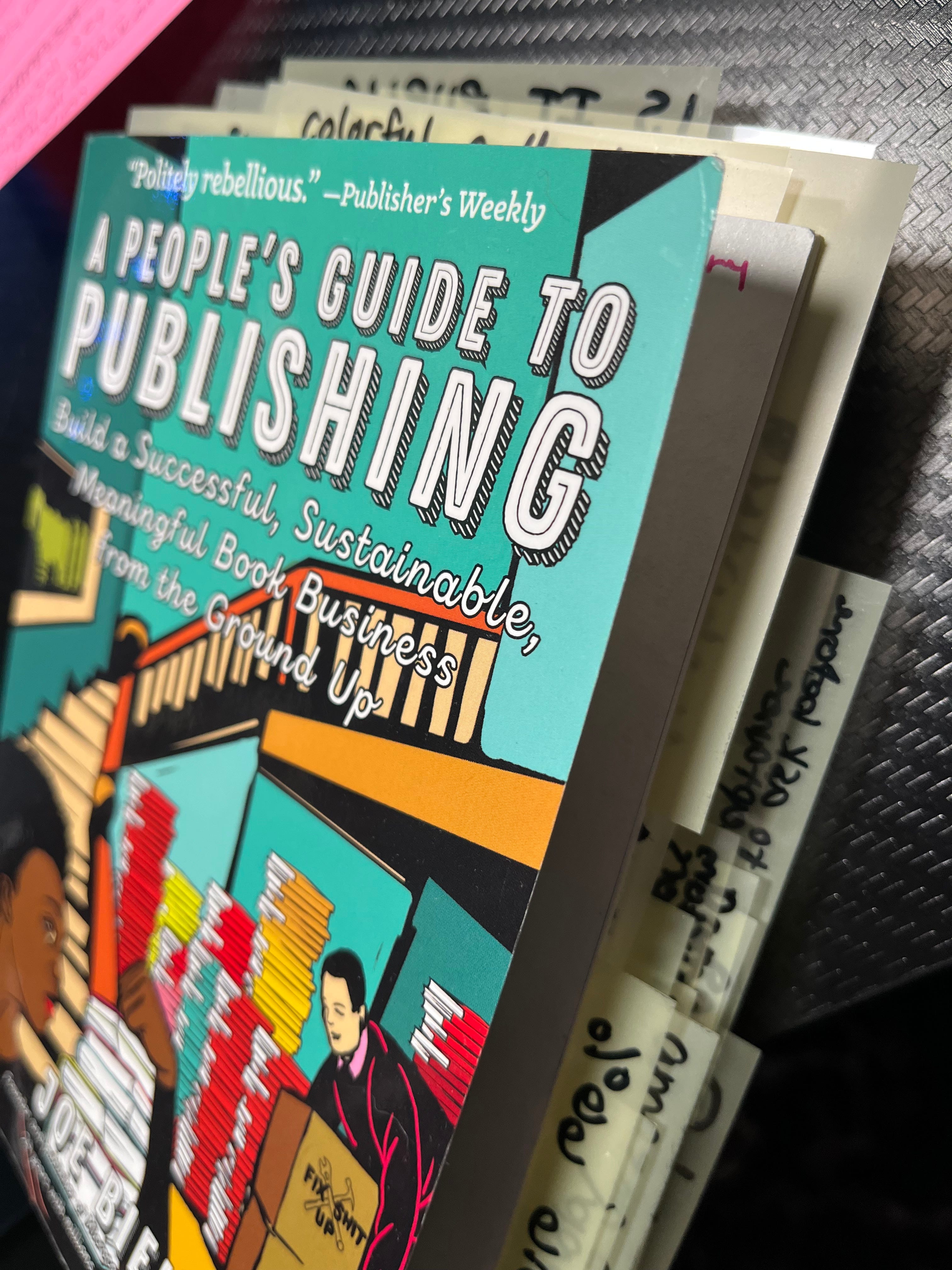 I have finished The People’s Guide to Publishing by Joe Biel of Microcosm Publishing. But the volume of notes I have from the book will have to wait until another time to assemble.