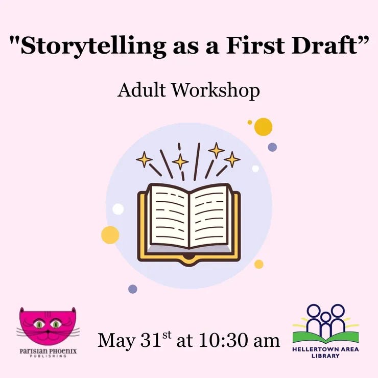 Larry Sceurman and I will be at Hellertown Library on May 31 for a workshop on preserving personal stories— whether they be family history, fiction, or personal. We’re going to discuss the stories we tell each other and how to use them as a first draft of a written work.