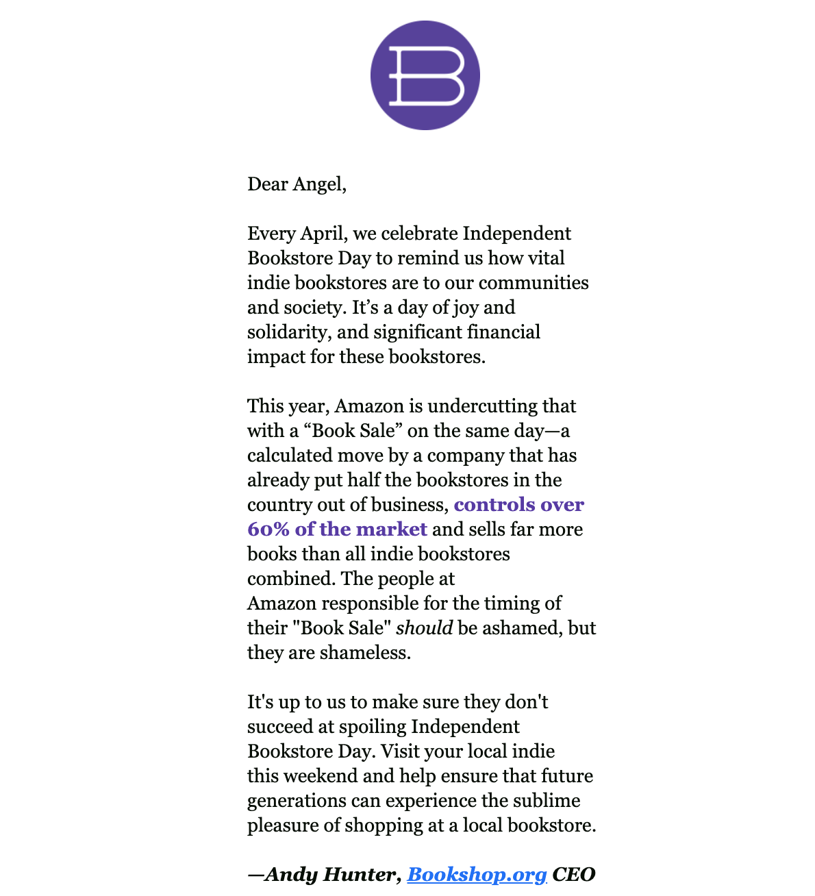 But I had noticed that Amazon announced a Spring Amazon Prime Day to correspond with Independent Bookstore Day.