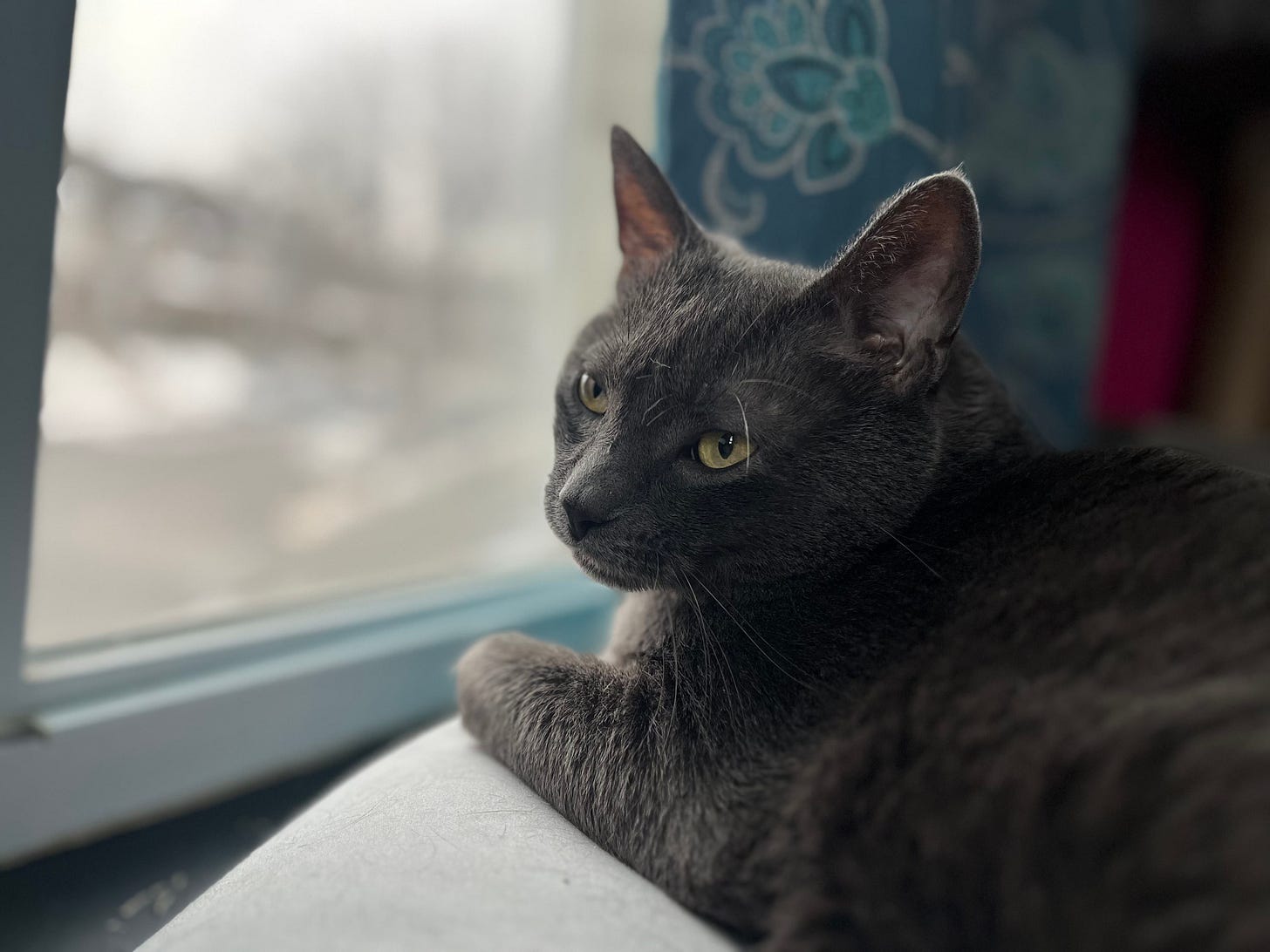 Fog bonded to me, and he has been by my side for the last five years. Purring loudly, snuggling fiercely and chirping like he was part Chartreuse or Russian Blue.