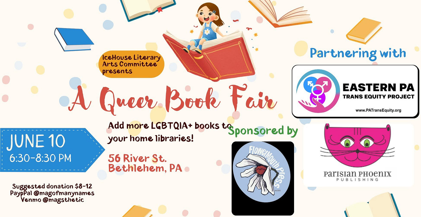 Parisian Phoenix will join Magnus Mateo, The Ice House Literary Arts Committee, The Eastern Pennsylvania Trans Equity Project and FlowerMouth Press for a Queer Book Fair, Tuesday June 10 at Bethlehem’s Ice House on Sand Island. The event will be from 6:30 to 8:30 p.m. and feature about 10 queer authors.