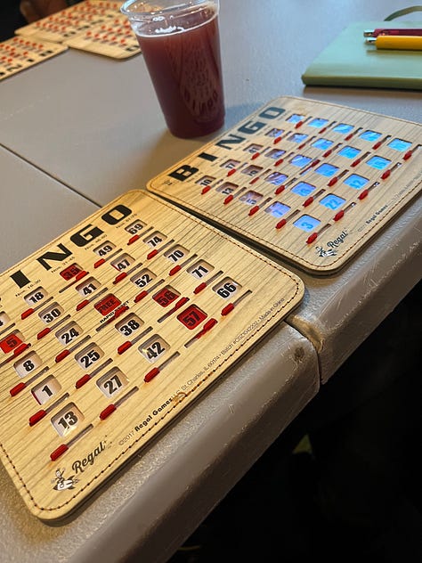 Last night, my daughter and I attended Bing-Ho, or bingo with drag performers as hosts and entertainers, at Lost Tavern Brewing in Hellertown, Pa. I met Nichole Stevens (one of the drag hosts), many many moons ago before she was “born.” My daughter and I have wanted to see Nichole perform for ages. Last night did not disappoint. We did not win any Bing-Ho prizes, but we did enjoy ourselves and eat food from a taco truck. Win!