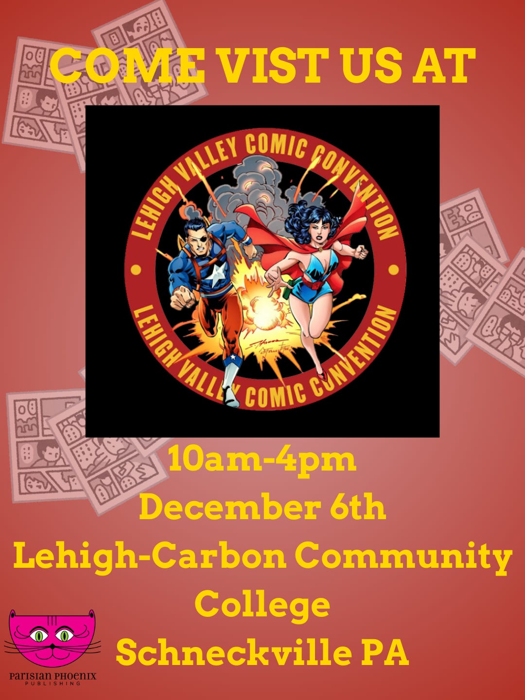 - Saturday, Angel Ackerman will be at Lehigh Valley Comic Con. She (I) will have a variety of books at the event: from highlighting the illustration of Joseph Swarctz to featuring many of our authors of children’s books and genre fiction alike.