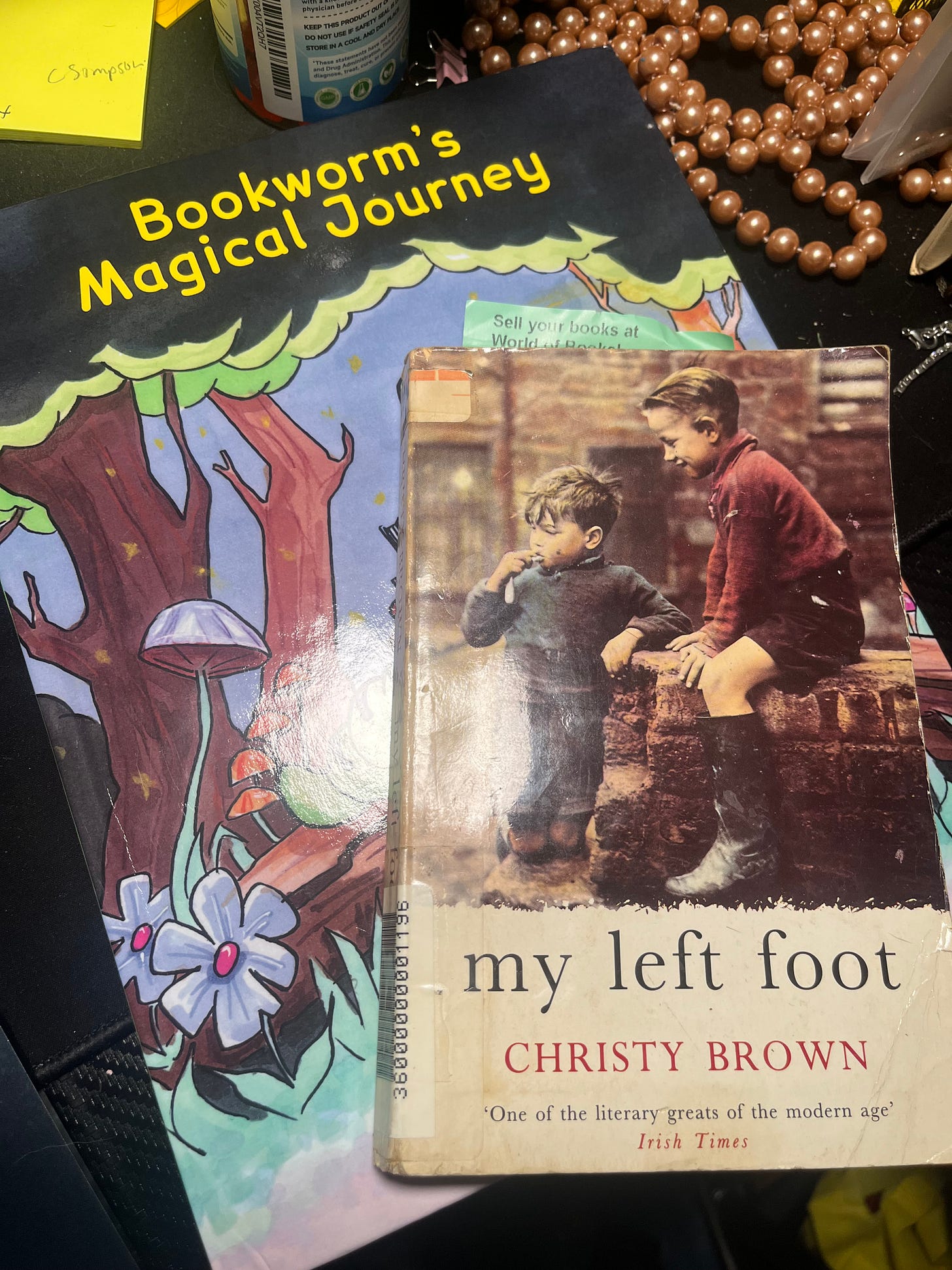 I ended up reading Christy Brown’s My Left Foot this weekend. (The movie stars Daniel Day Lewis. I watched that also.) Christy, born in 1932 as a middle child in an Irish Catholic family of 22 children, had cerebral palsy. The only limb he could control was his left foot— and he even learned to paint (and had gallery shows) with his left foot.